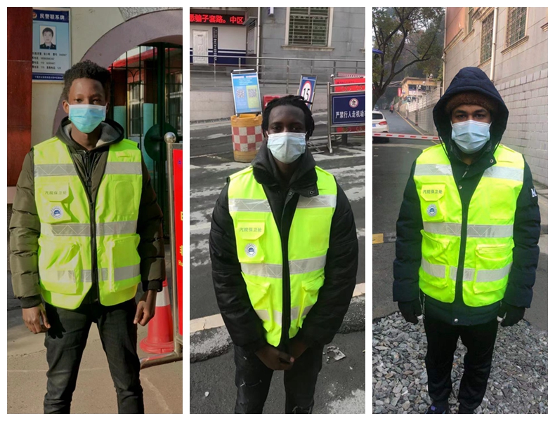 “我可不是外人,这儿是我的学校,我要为它出份力。”从1月26日起,每天上午8时,我校外国留学生便出现在校园东大门和西大门的值守岗位上。他们面戴口罩,身穿印有校徽的荧光黄色反光背心,认真地提醒每一位进出校园的行人正确佩戴口罩。