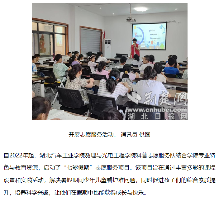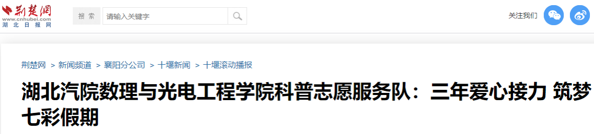 【荆楚网】湖北汽院数理与光电工程学院科普志愿服务队:三年爱心接力 筑梦七彩假期