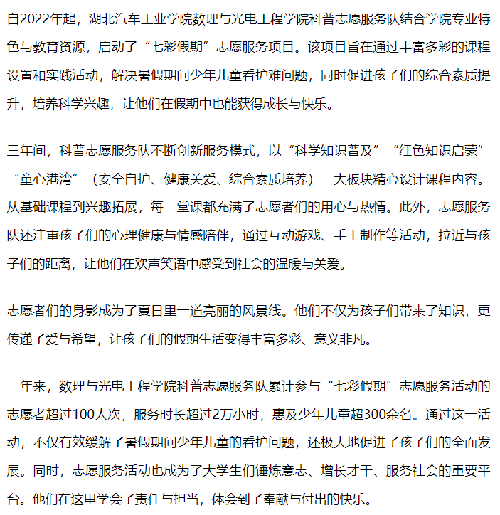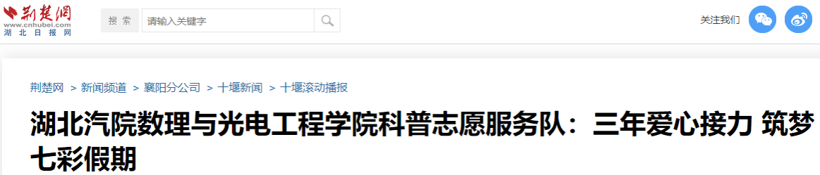【荆楚网】湖北汽院数理与光电工程学院科普志愿服务队:三年爱心接力 筑梦七彩假期