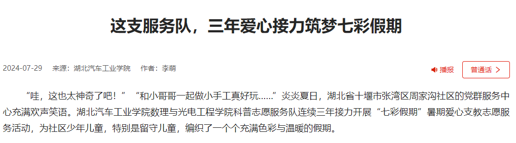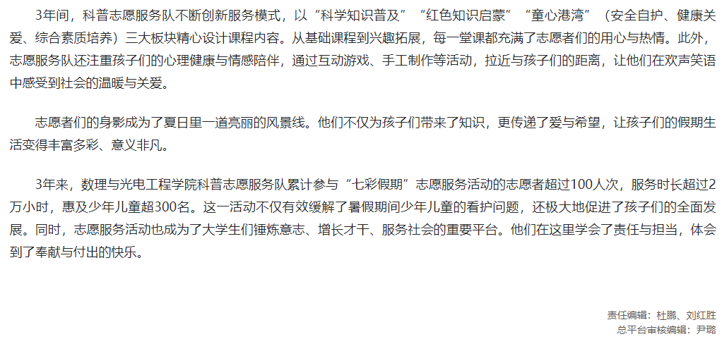 【学习强国总平台】这支服务队,三年爱心接力筑梦七彩假期