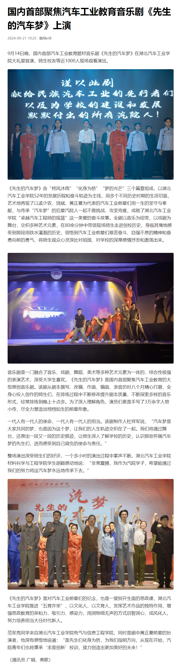 【今日头条】国内首部聚焦汽车工业教育音乐剧《先生的汽车梦》上演