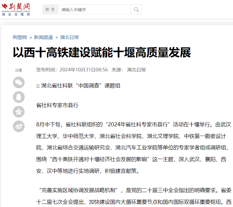 【荆楚网】以西十高铁建设赋能十堰高质量发展