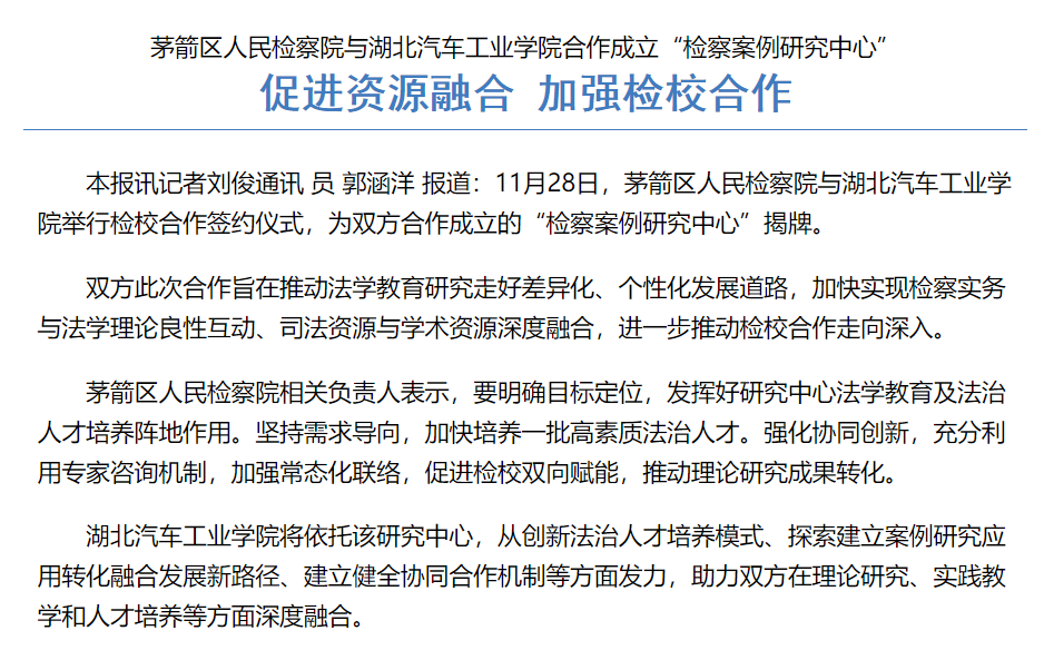 【十堰日报】茅箭区人民检察院与国产精品永久久久久久久久久|91精品无码国产在线观看一区|久久人爽爽人爽爽ąV无码自慰|最新无码国模国产在线|2020最新无码国产在线观看合作成立“检察案例研究中心”促进资源融合 加强检校合作