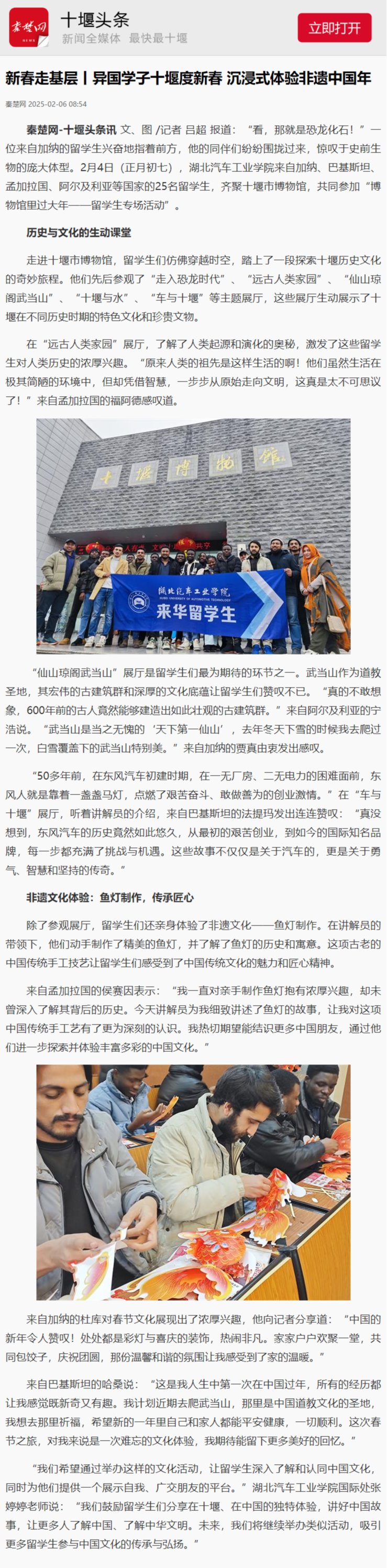 【秦楚网】新春走基层丨异国学子十堰度新春 沉浸式体验非遗中国年