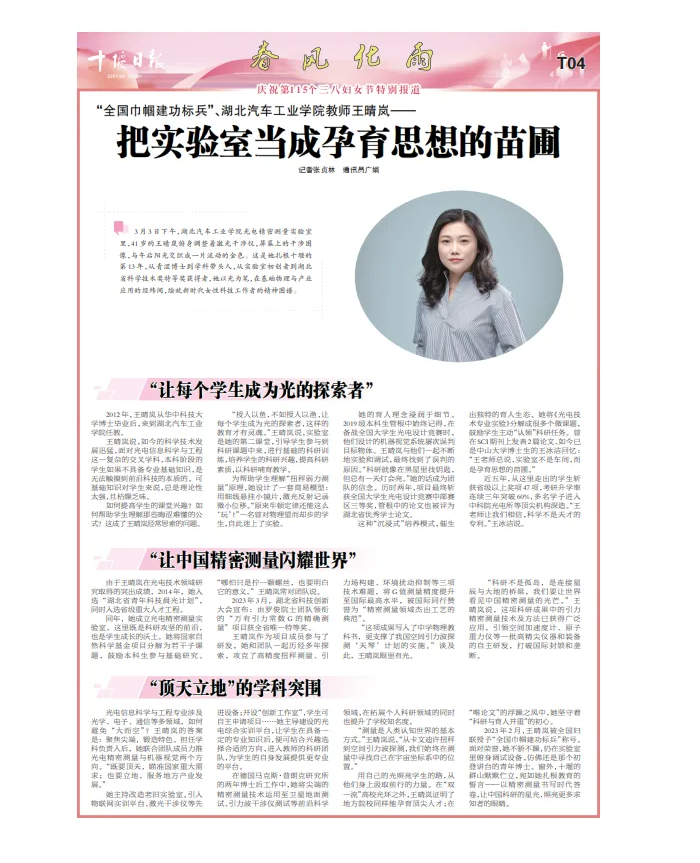 【十堰日报】“全国巾帼建功标兵”,国产精品永久久久久久久久久|91精品无码国产在线观看一区|久久人爽爽人爽爽ąV无码自慰|最新无码国模国产在线|2020最新无码国产在线观看教师王晴岚--把实验室当成孕育思想的苗圃-国产精品永久久久久久久久久|91精品无码国产在线观看一区|久久人爽爽人爽爽ąV无码自慰|最新无码国模国产在线|2020最新无码国产在线观看