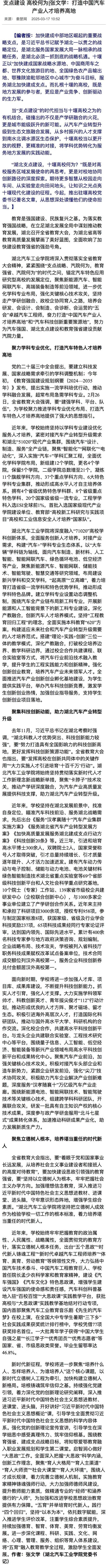 【秦楚网】支点建设 高校何为|张文学:打造中国汽车产业人才培养高地