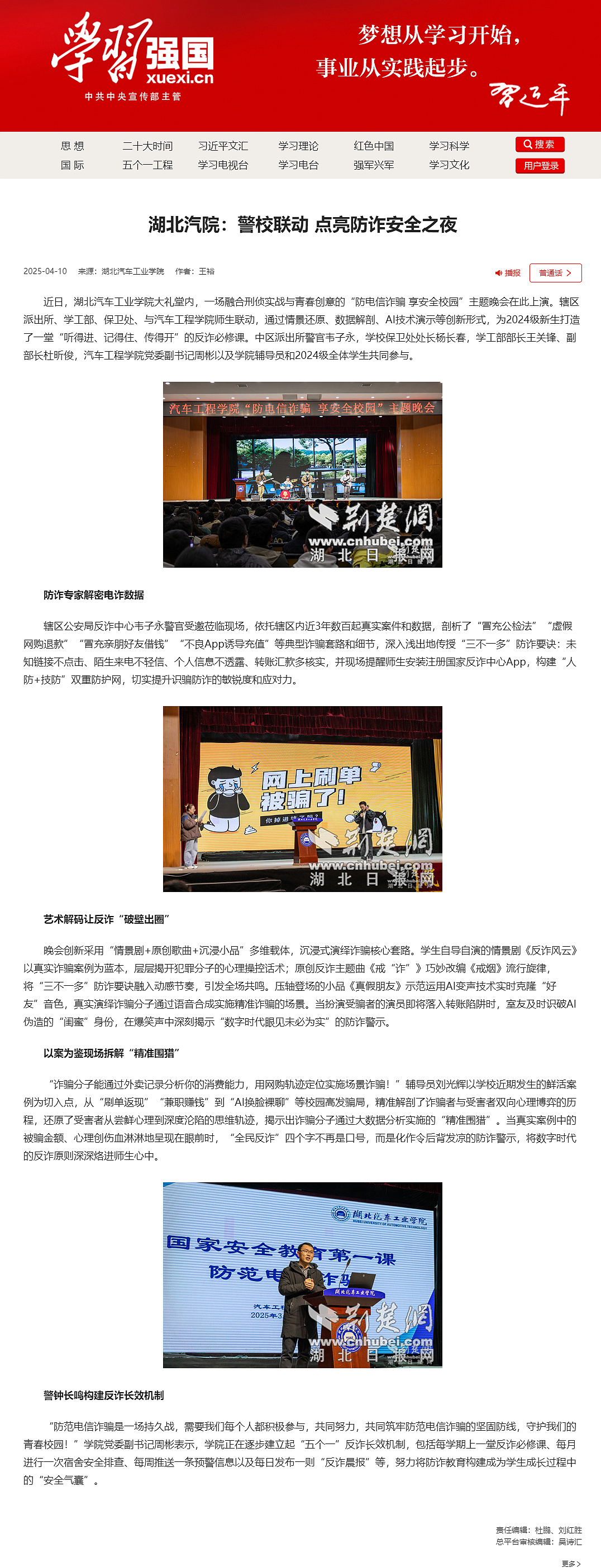 【学习强国总平台】湖北汽院:警校联动 点亮防诈安全之夜